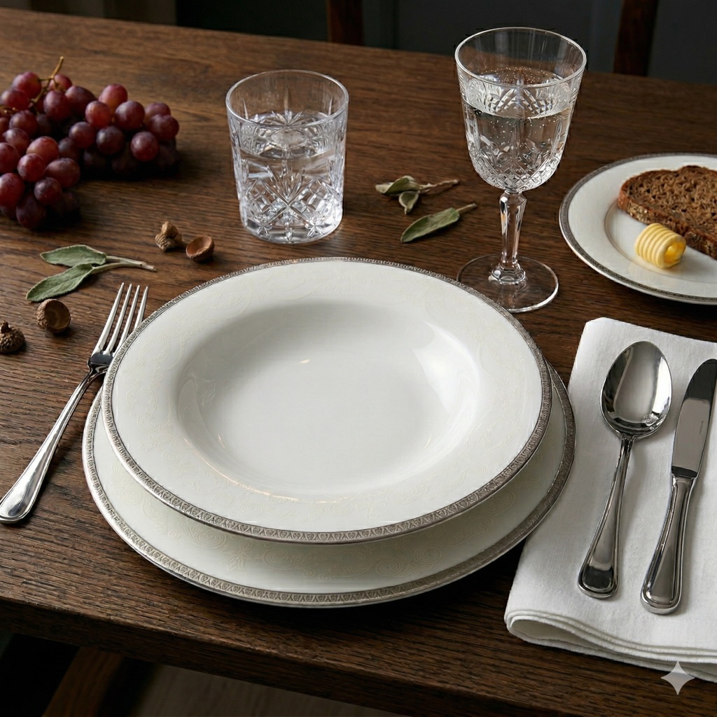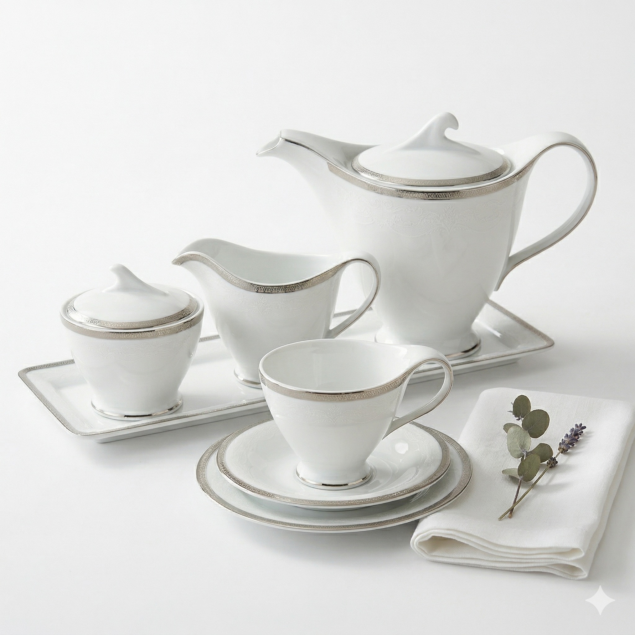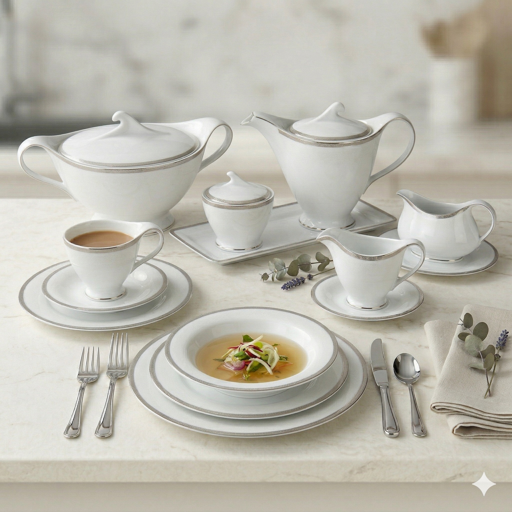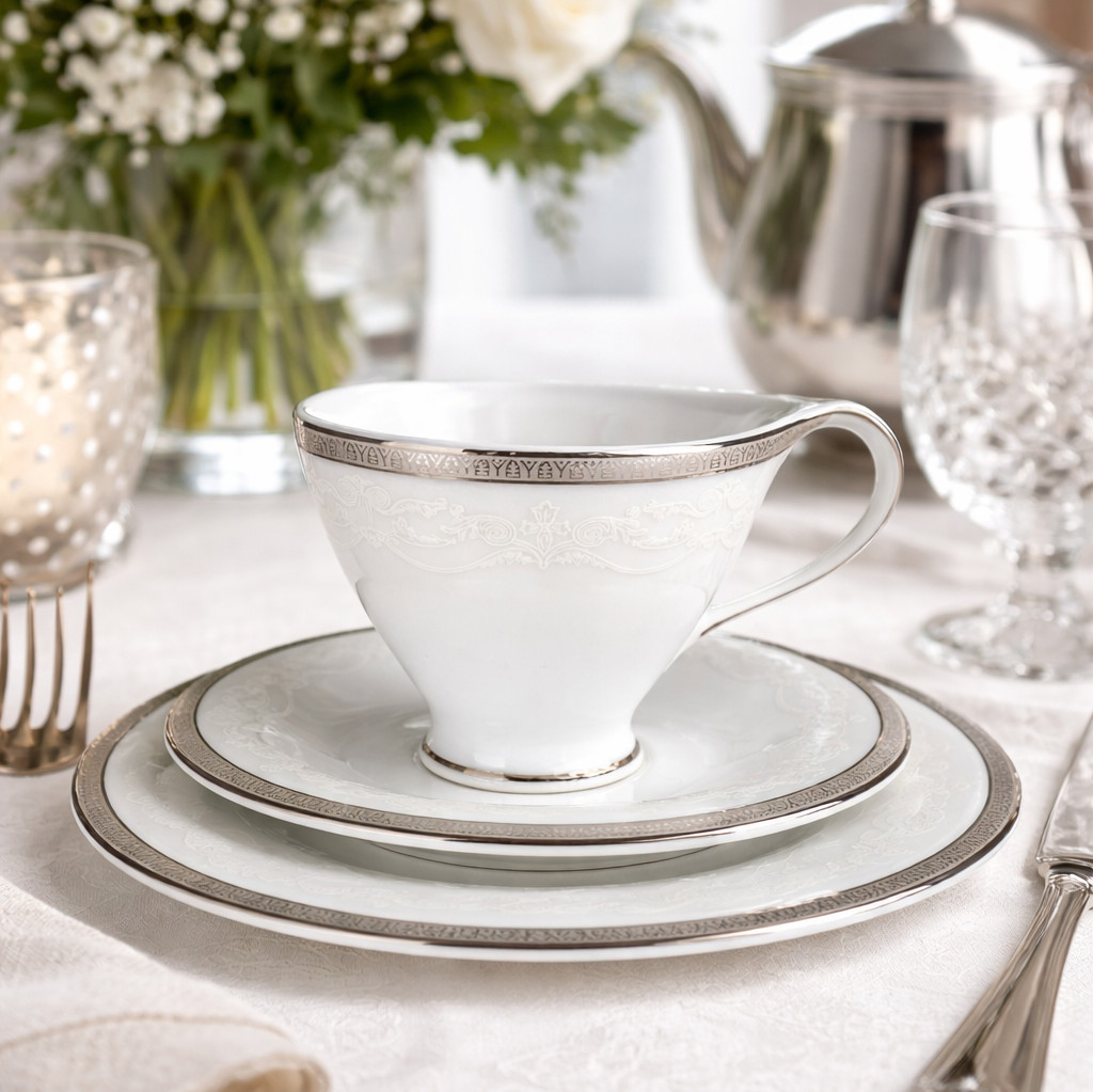 Antonio Platin Plus 1170 - serwis obiadowo kawowy dla 12 osób 72 el.- Porcelana Bogucice