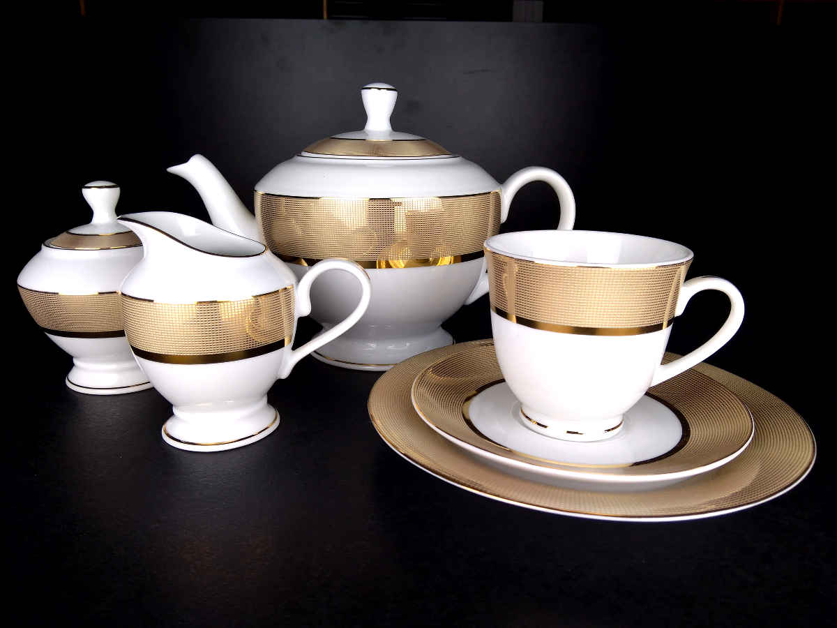 Serwis do kawy Opal Gold na 12 osób – elegancja w każdym detalu