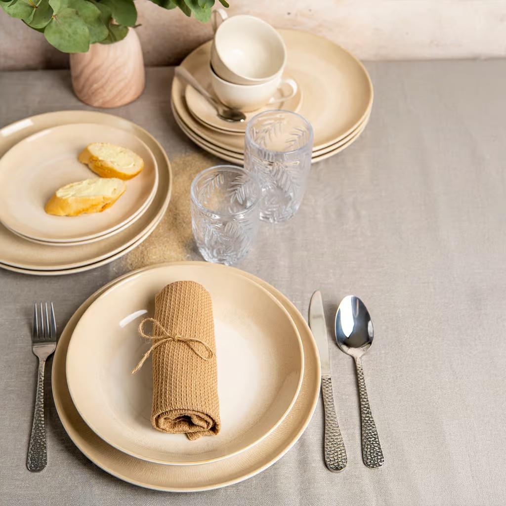 Talerz obiadowy Playa to element kolekcji ceramicznej, wyróżniającej się unikalnym wykończeniem. Dzięki specjalnej technice szkliwienia reactive glaze, każdy talerz zachwyca niepowtarzalnym wzorem i głębią koloru, co nadaje mu wyrafinowany i butikowy charakter. Ciepły, piaskowy odcień ceramiki idealnie wpisuje się w trend inspirowany naturą, dodając stołowi subtelnej elegancji. Talerz płaski łączy wyjątkowy design z funkcjonalnością – można go używać w kuchence mikrofalowej oraz myć w zmywarce, co czyni go doskonałym wyborem zarówno na co dzień, jak i na wyjątkowe okazje.