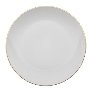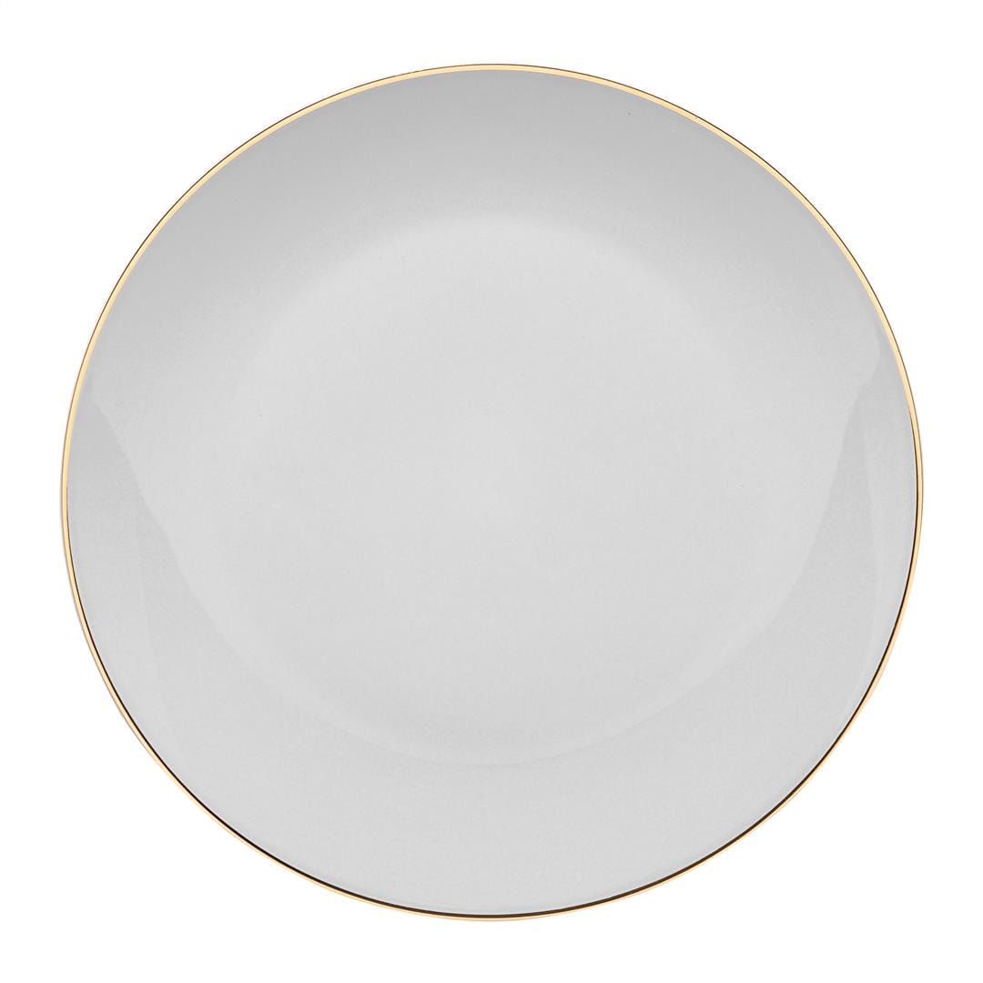 Talerz obiadowy Royal to doskonały przykład nowoczesnej elegancji, która zachwyca swoją prostotą i wyrafinowaniem. Wykonany z porcelany, wyróżnia się minimalistycznym szarym kolorem, który od kilku sezonów króluje w trendach, oraz subtelnym złotym rantem, nadającym mu odrobiny luksusu. Doskonale wpisuje się w styl skandynawski, a jednocześnie wprowadza element glamour, zgodnie z trendem Quiet luxury, który łączy szarość z subtelnością złota.