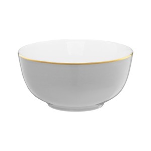 Salaterka w szarym kolorze, ozdobiona delikatnym złotym rantem, to idealne połączenie nowoczesności i klasyki. Wykonana z porcelany, wyróżnia się subtelnym designem, który doskonale wpisuje się w każdą aranżację stołową. Szary odcień nadaje jej uniwersalności, a złoty rant dodaje odrobiny luksusu, sprawiając, że jest to nie tylko praktyczny, ale i stylowy element każdej zastawy. Idealna do serwowania mniejszych porcji i przekąsek, będzie ozdobą zarówno codziennych, jak i wyjątkowych posiłków.
