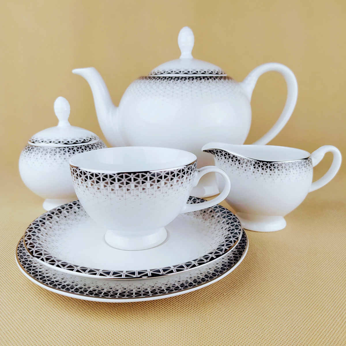Remus Platin - Serwis do herbaty lub kawy dla 12 osób z talerzykami deserowymi - Bogucice