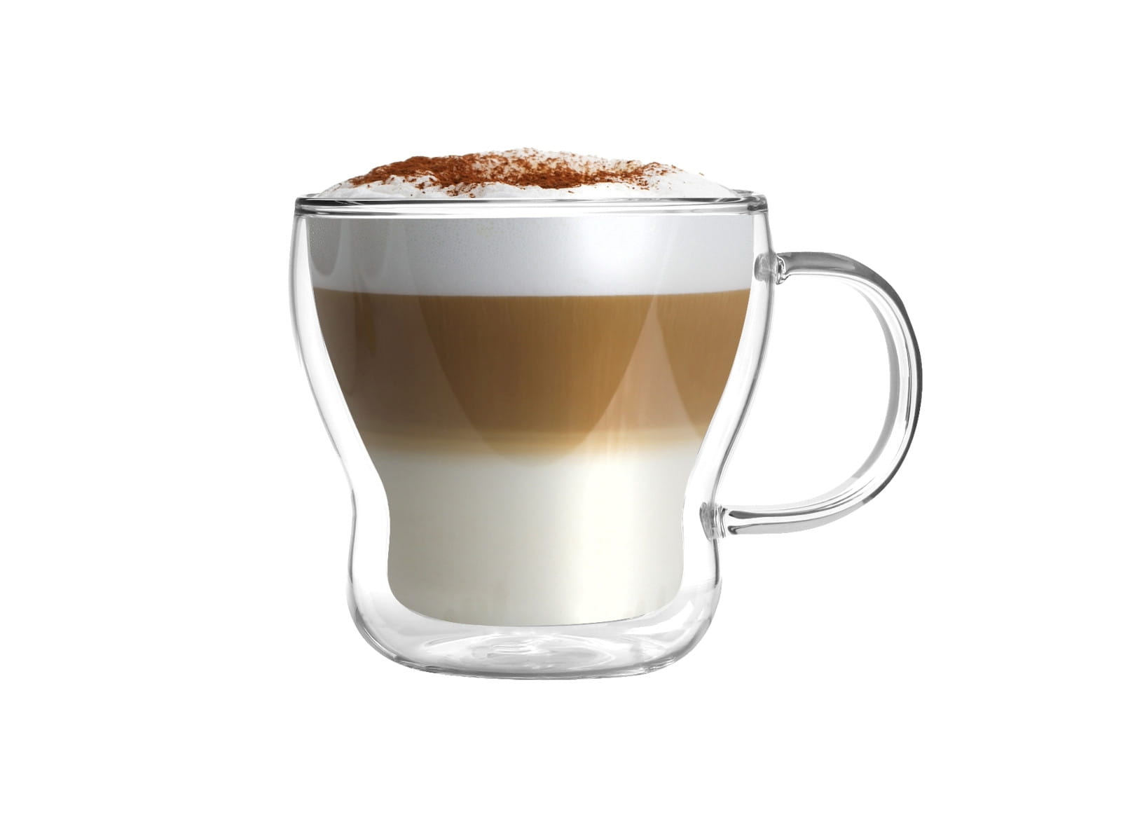 Funkcjonalny i praktyczny zestaw dwóch pojemnych filiżanek z podwójną ścianką z serii Bolla marki Vialli Design. Produkt został wykonany z najwyższej jakości szkła boro krzemowego, które jest odporne na wszelakie matowienie w zmywarce oraz szok termiczny. Naczynia wykonywane są ręcznie a dzięki podwójnym ściankom utrzymują odpowiednią temperaturę napoju na dłużej, jednocześnie prezentując w całej okazałości pyszną zawartość. Ergonomiczny kształt szklanek łączy klasykę i nowoczesność a zgrabne uszko zapobiega wyślizgnięciu się naczynia z dłoni. Szklanki będą niewapliwą ozdobą każdego stołu.