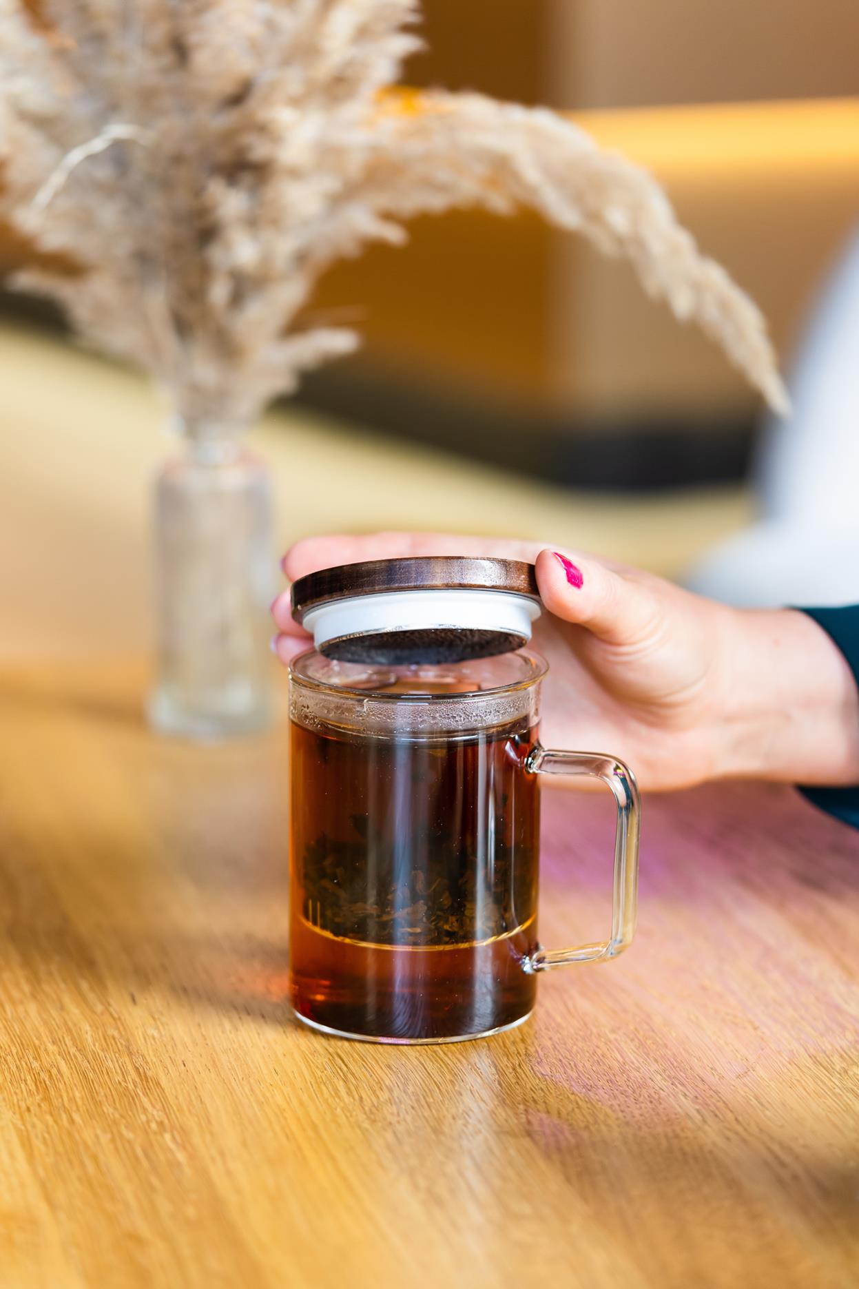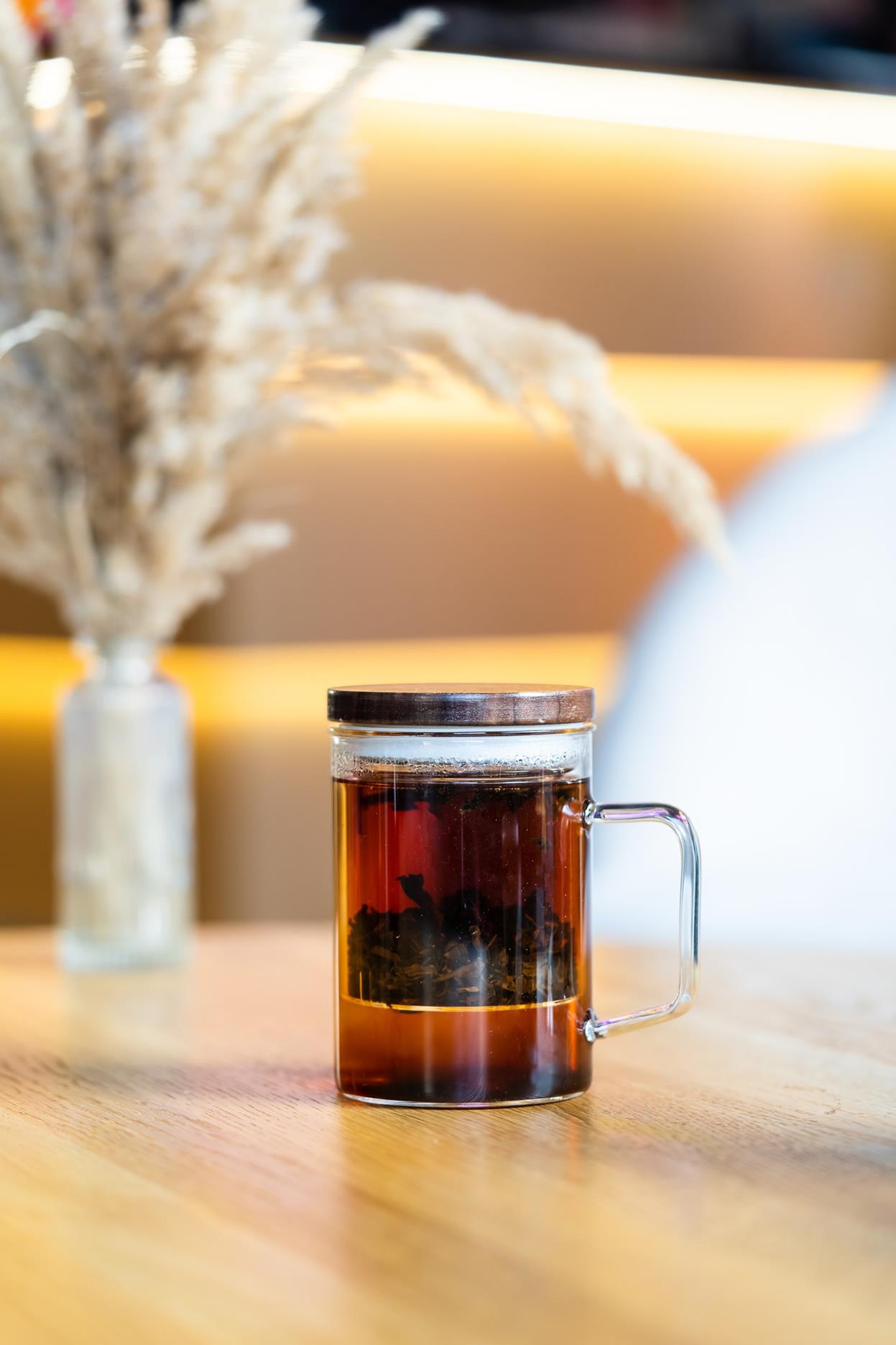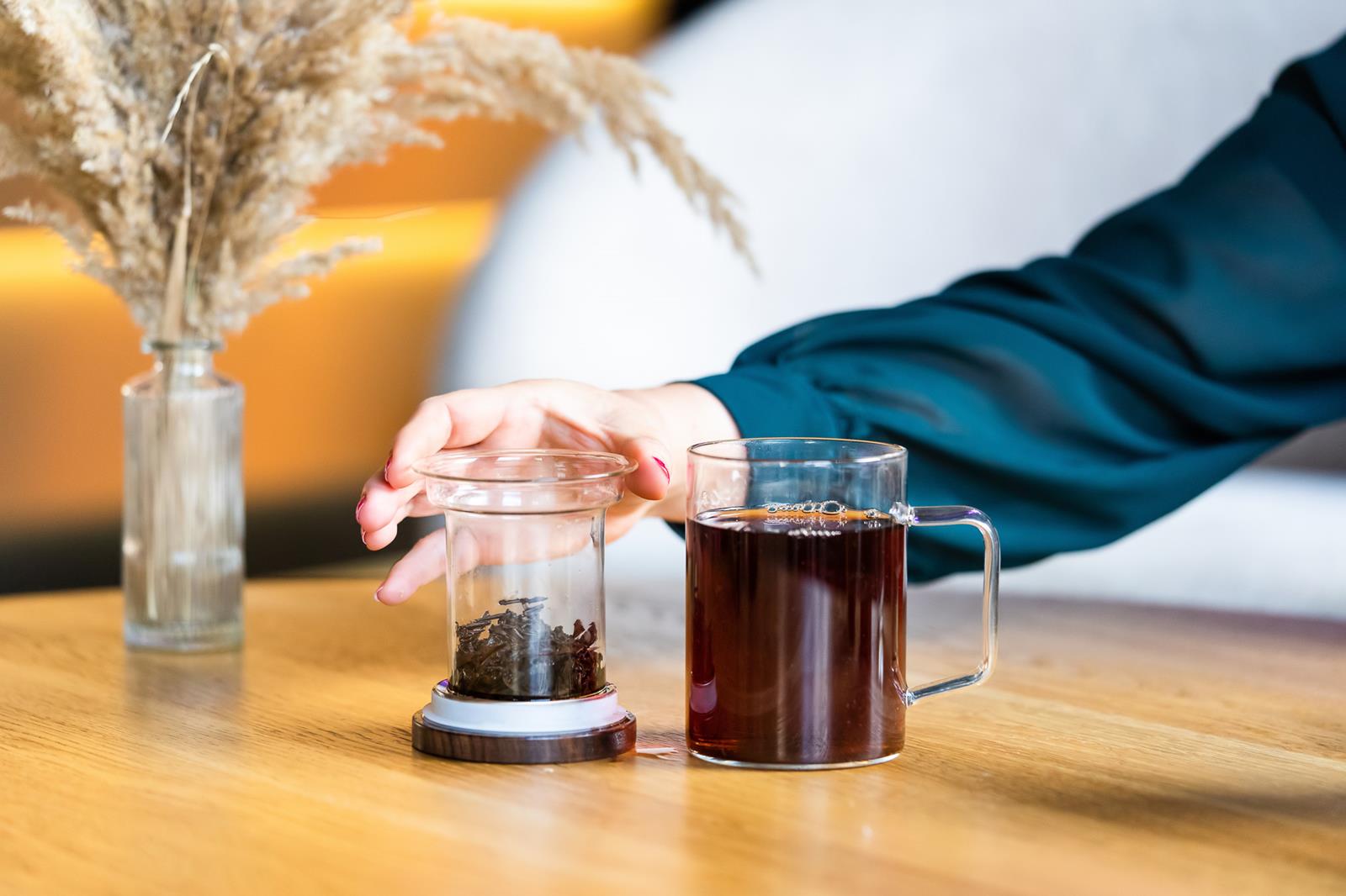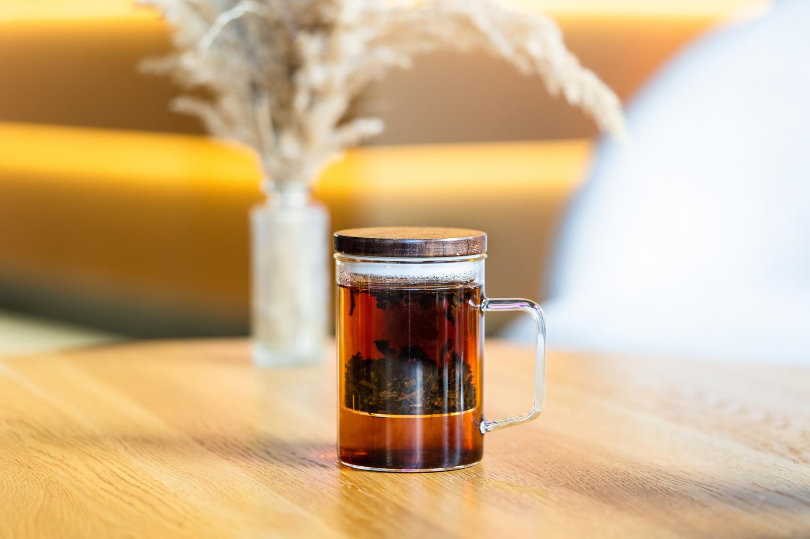 Transparentne szklane ścianki umożliwiają śledzenie procesu zaparzania i kontroli intensywności herbaty.