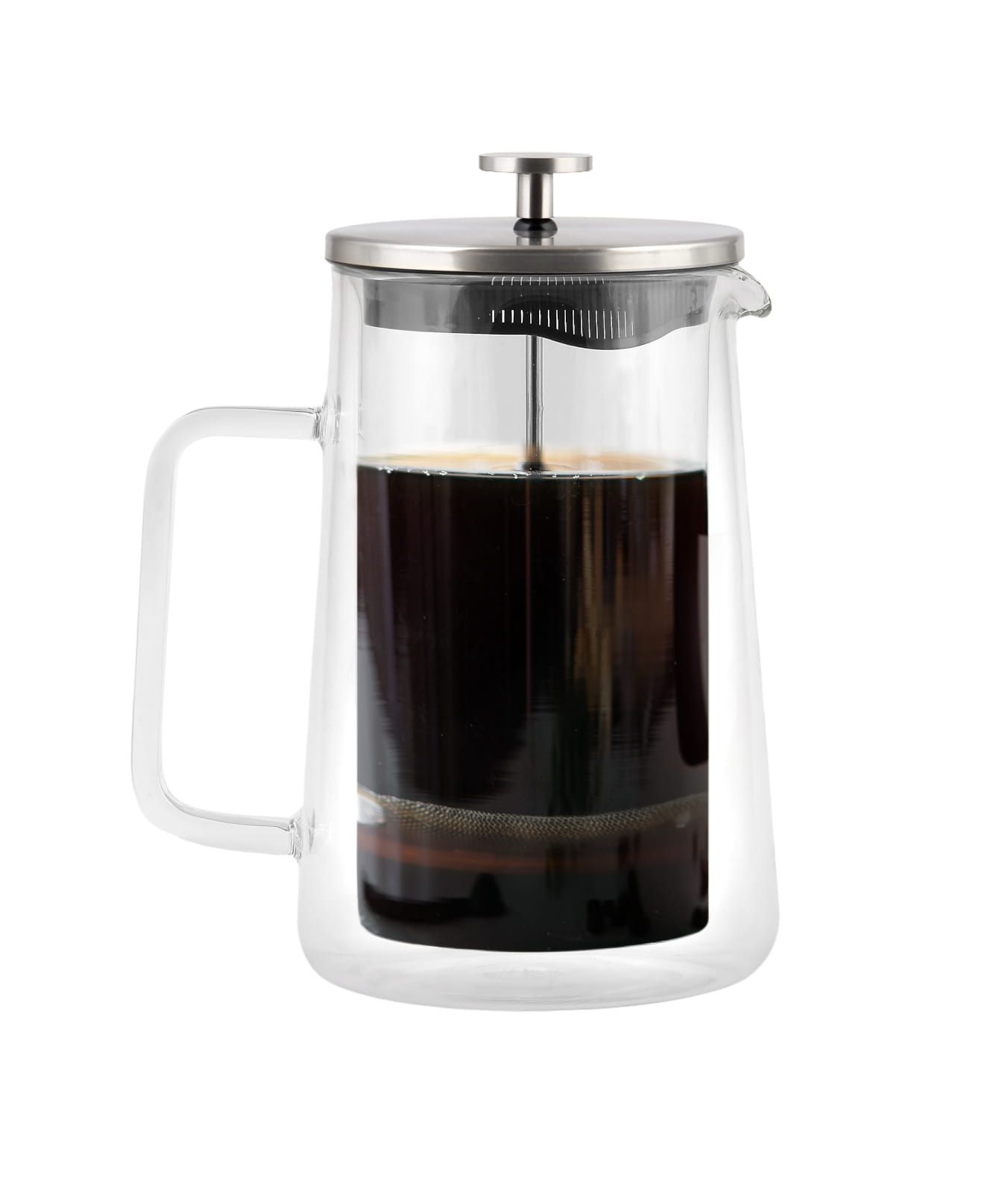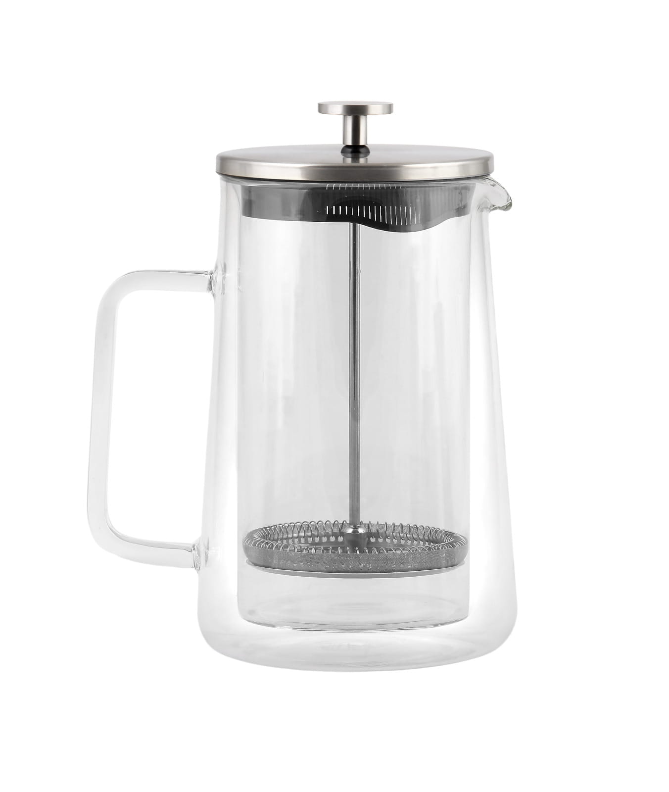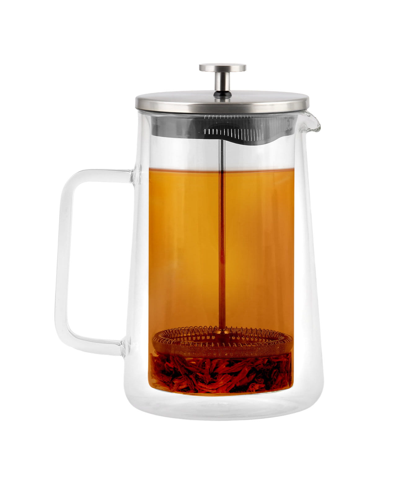 Transparentne ścianki umożliwiają śledzenie procesu zaparzania i kontroli nasycenia naparu, a szeroki uchwyt i dzióbek ułatwiają nalewanie.