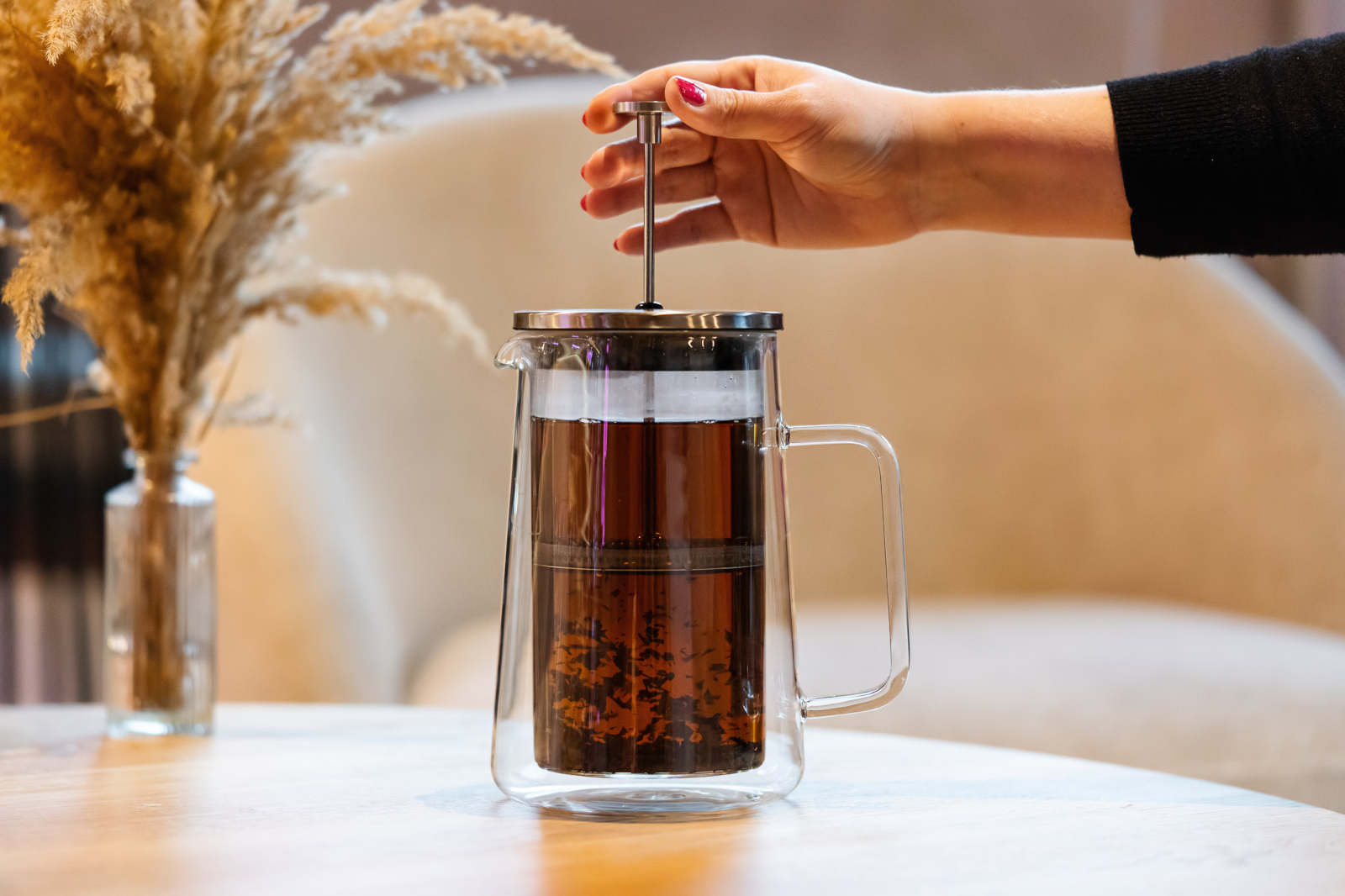 Elegancki i gustowny zaparzacz tłokowy, zarówno do herbaty liściastej, granulowanej jak i kawy.