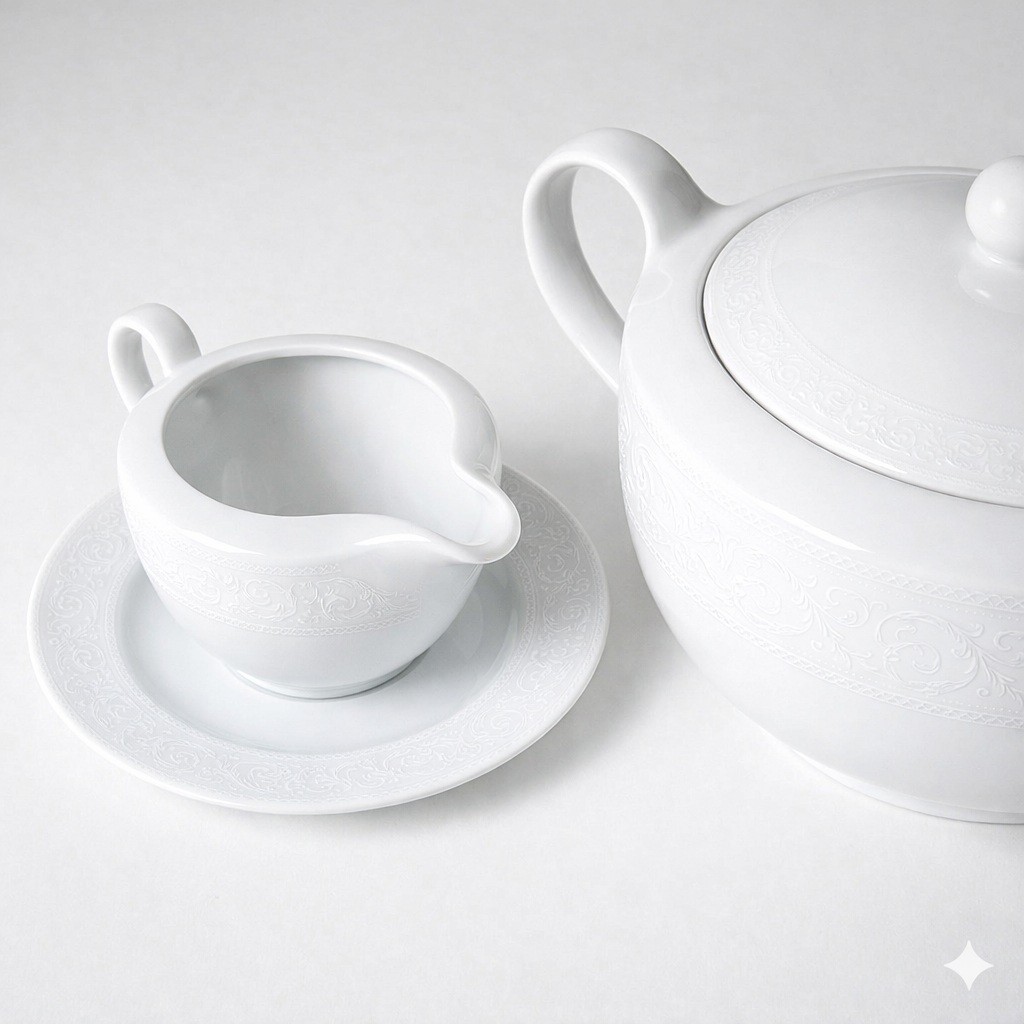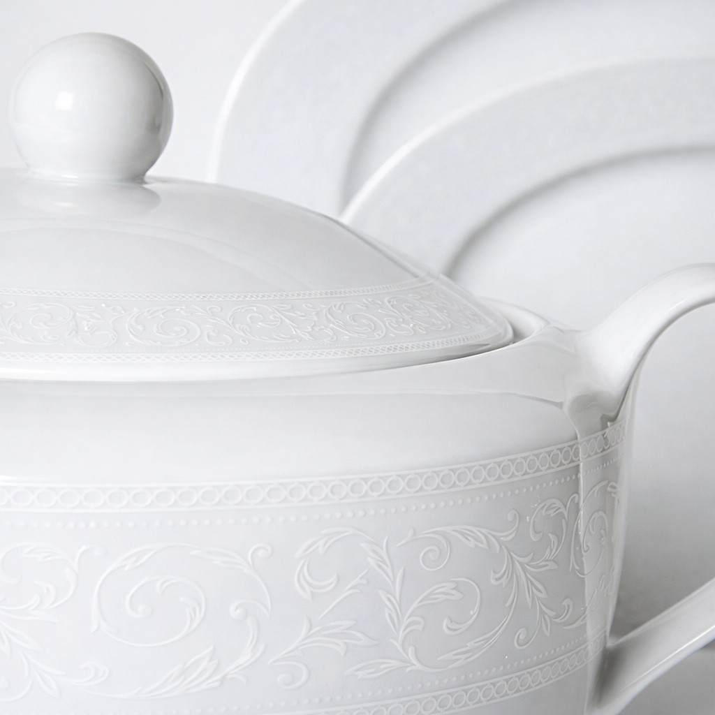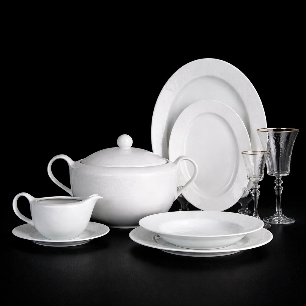 Biała Koronka WA 98 - Serwis obiadowy dla 12 osób 41 el. - Porcelana Waza
