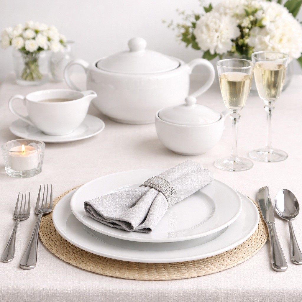 Biała koronka WA-98 to piękne nakrycie. Biała porcelana z subtelnym zdobieniem daje wrażenie czystości i świeżości. Porcelana ta gwarantuje pięknie nakryty stół zarówno podczas uroczystości jak i codziennych rodzinnych posiłków. Serwis Biała Koronka jest jednym z produktów porcelany Waza cieszących się najwyższym uznaniem klientów. Nic w tym dziwnego biorąc pod uwagę, że jest to polski produkt cechujący się doskonałą jakością i pięknym zdobieniem. Cena również jest bardzo przystępna w porównaniu do podobnych serwisów proponowanych przez konkurencyjne marki. Serwis obiadowy Biała Koronka WA-98 jest w ofercie naszego sklepu niezmiennie od kilku lat i cały czas cieszy się uznaniem wśród naszych klientów. Informujemy, że możliwe jest oczywiście poszerzanie swojego zestawu o dowolne elementy dostosowując go idealnie do własnych potrzeb.